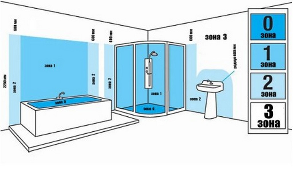 Зоны опасности для электрозетки в ванной комнате и правила ГОСТа