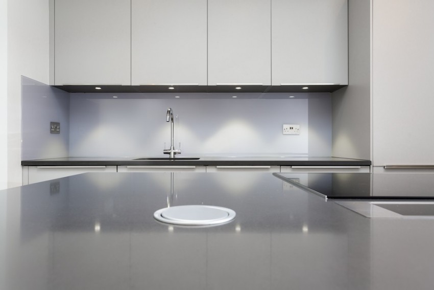 - встраиваемые или скрытые розетки –наиболее эстетичный из всех возможных вариант. Обычно это выглядит как блок из нескольких розеток, который встроен в столешницу. Привлекательности добавляет то, что обычно блок не видно до того момента как он вам не понадобится, а при легком нажатии он выдвигается, позволяя подключить приборы.