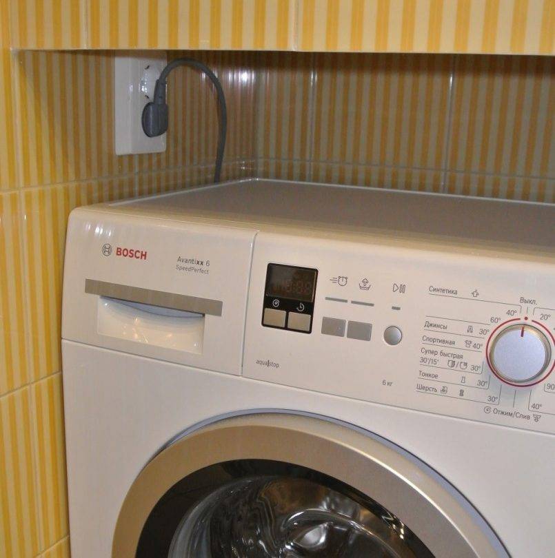 И первая розетка предназначена для стиральной машины. Установка и подключение этой стационарной техники правильнее выполнять в помещении выделенном под постирочную или кладовую, но чаще размеры квартир не позволяют размещения такой комнаты. И расположение стиральной машины производят либо в ванной (если позволяет площадь), либо на кухне. Мы посчитаем эту розетку за ванной комнатой.