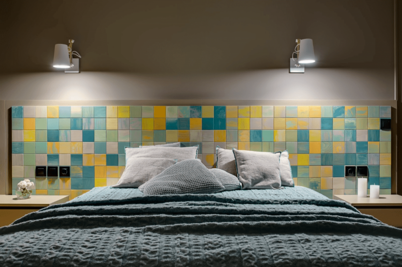 По возможности полезно сделать розетку на стене за кроватью. Смысл — в «заделе» на будущие перестановки или на последующие идеи, например, диодную подсветку по низу кровати.