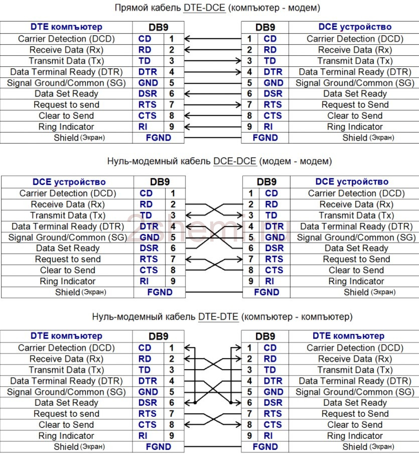 Описание полного нуль-модемного кабеля