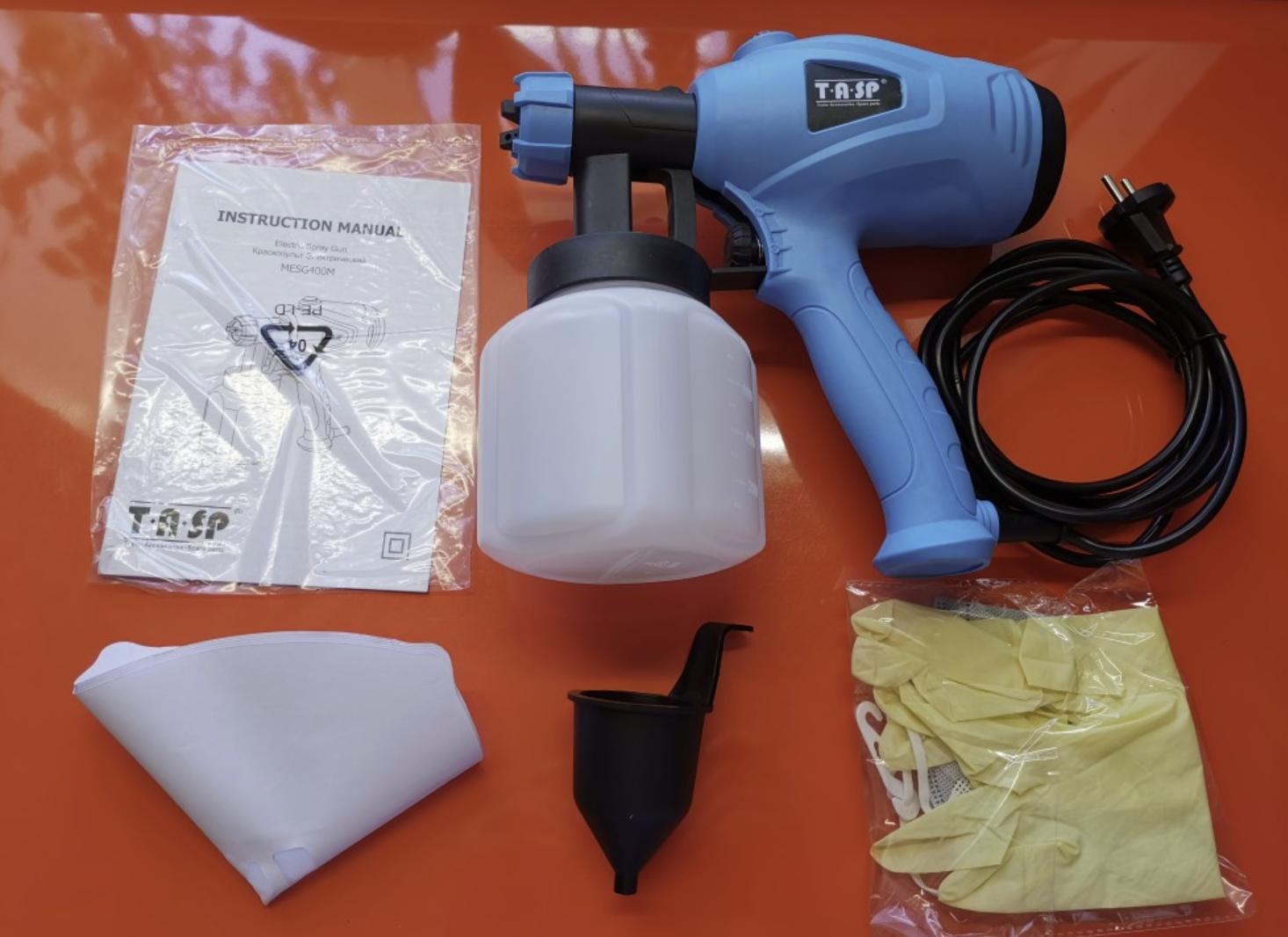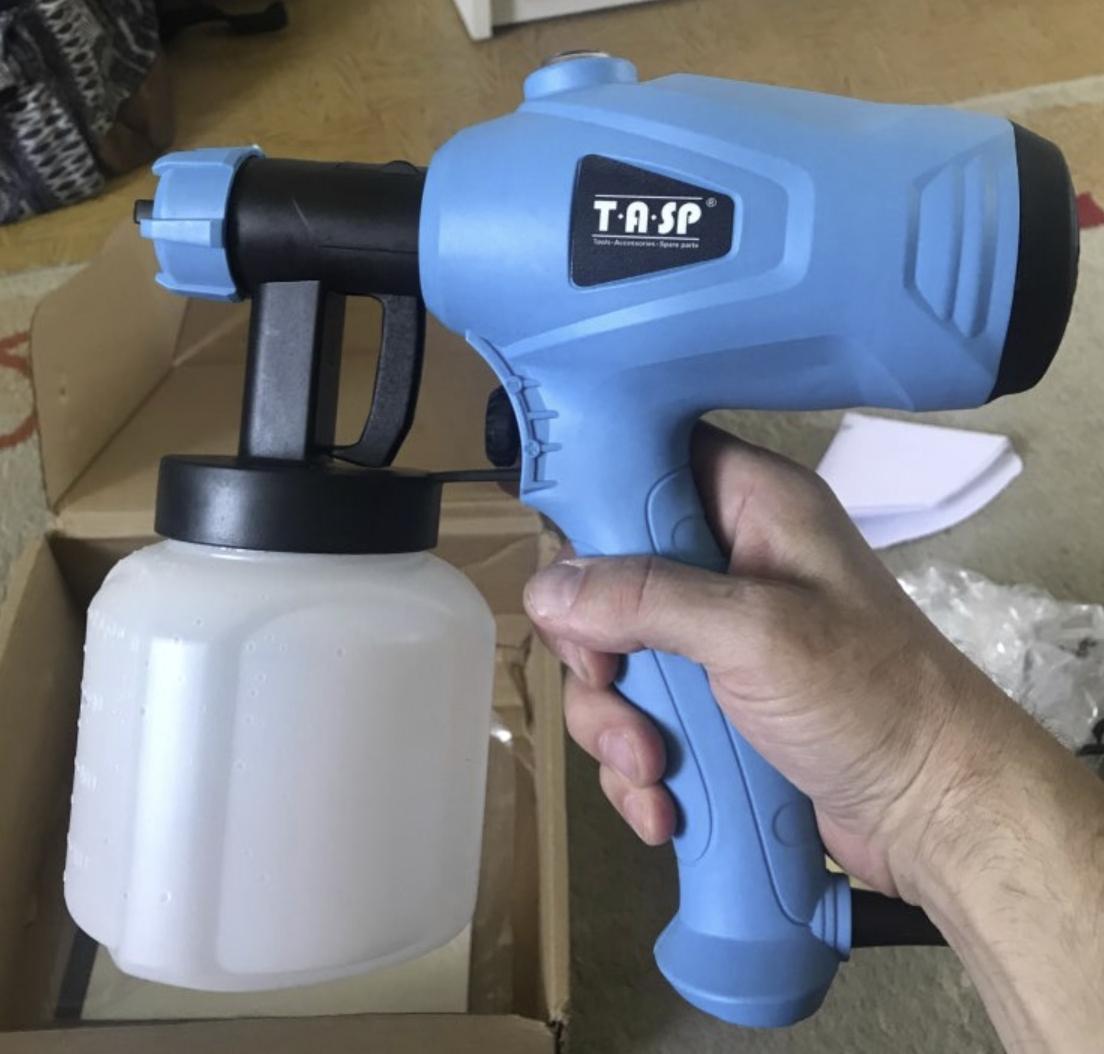 Следующий девайс необходим для проведения покрасочных работ. Больше всего мне нравится, что краскопульт допускает аккуратное нанесение на узкие поверхности. Это возможности благодаря настраиваемому соплу. Ведь покраска не всегда связана с огромным забором или стеной. Часто это творческий процесс и требует более бережного отношения.