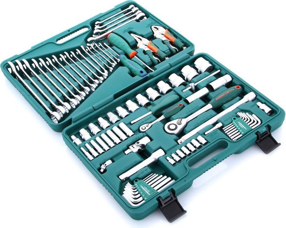 Комплект инструмента, представленного в наборе, порадует любого автомобилиста и автомеханика благодаря наличию большого количества 6-гранных торцевых головок (от 4 до 32 мм), и двух весьма качественных трещоток.