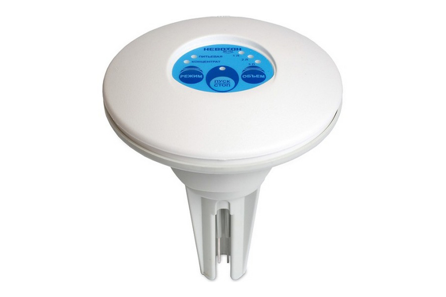 - «Невотон ИС-112». Представляет собой круглую пластину с серебряным стержнем, которую можно надеть на кувшин или банку. Устройство работает в двух режимах: посредством первого получают питьевую воду, второго – концентрат для наружного применения. Производитель указывает, что с помощью одного аппарата можно получить до 60 тонн воды.