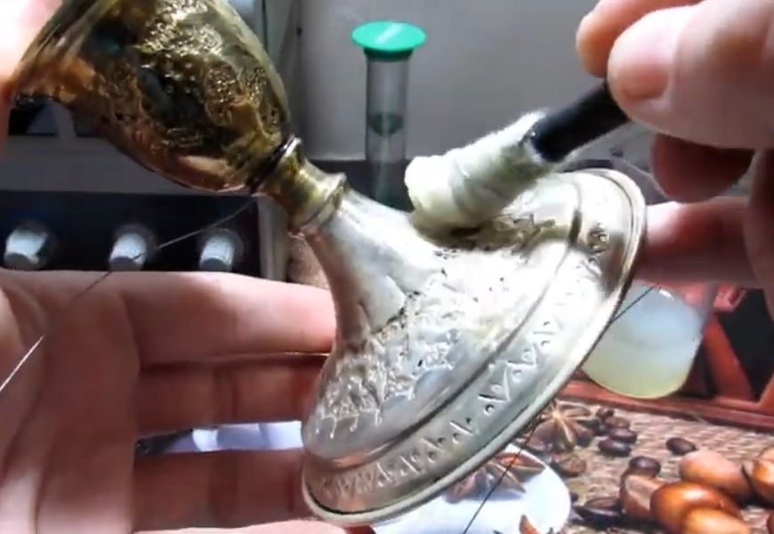 - Очищают поверхность металлического изделия, затем опускают в кипящий содовый раствор. После — промывают проточной водой.