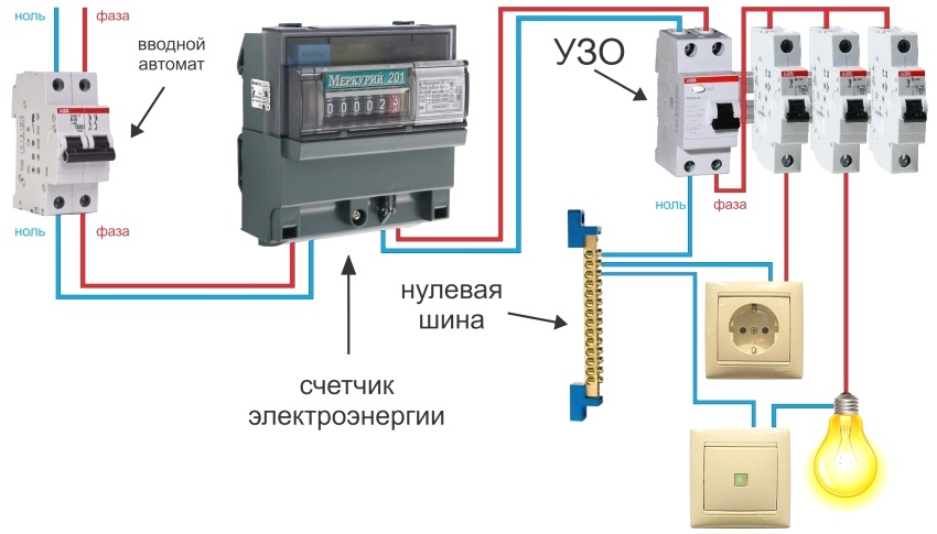 Подключение УЗО и электросчетчика