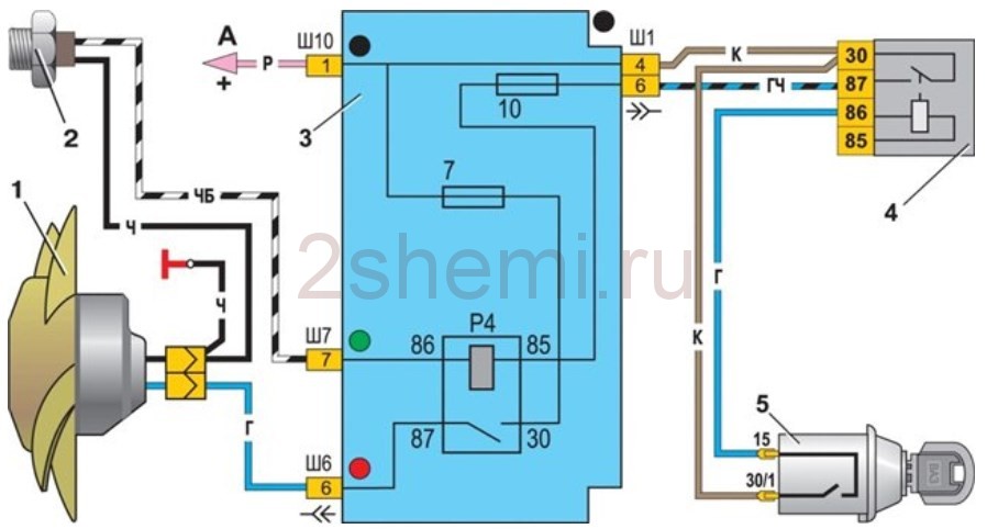 Схема включения кулера ВАЗ 2104, 2105 и 2107