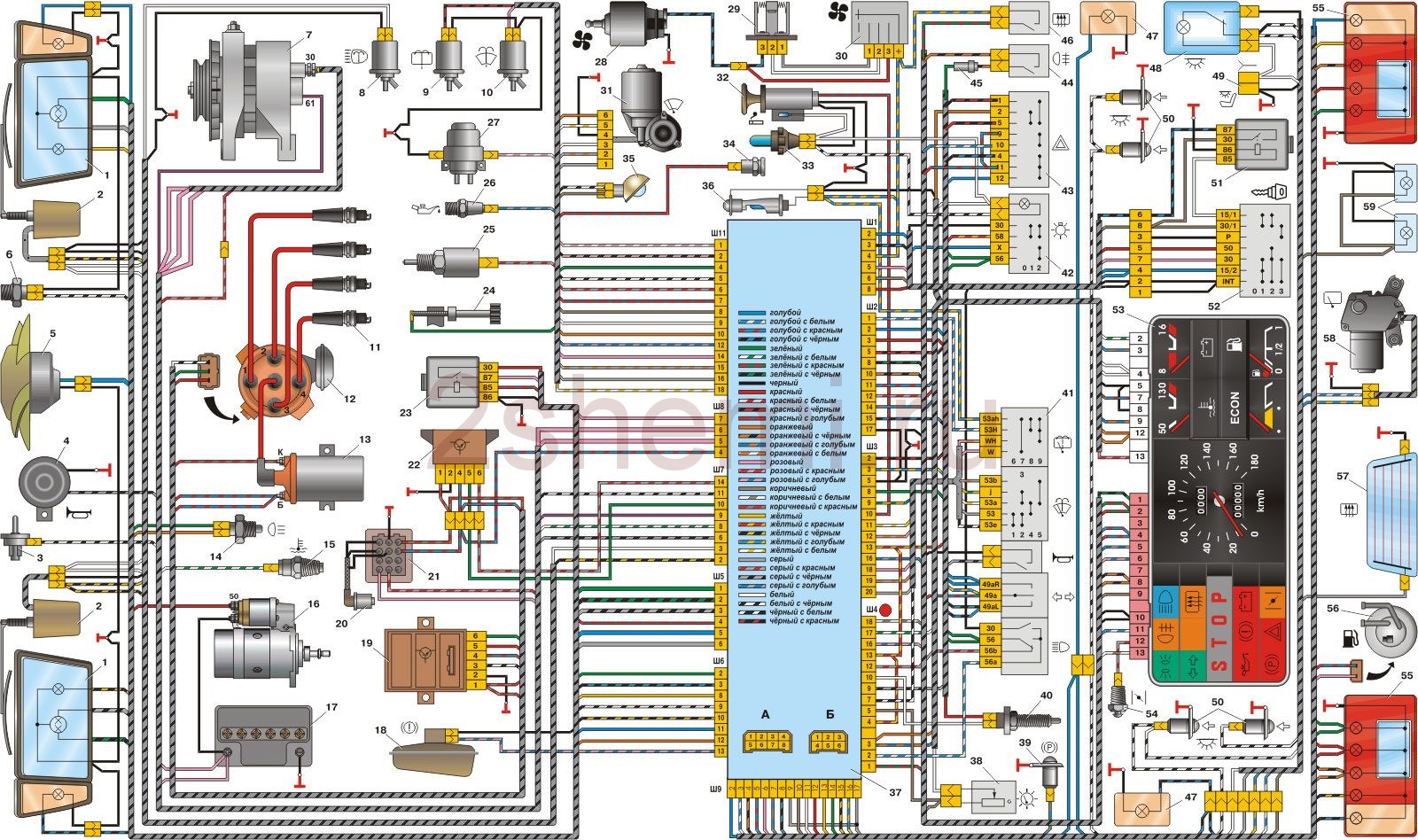 Электросхема ВАЗ-2109 карбюратор — полный вид: