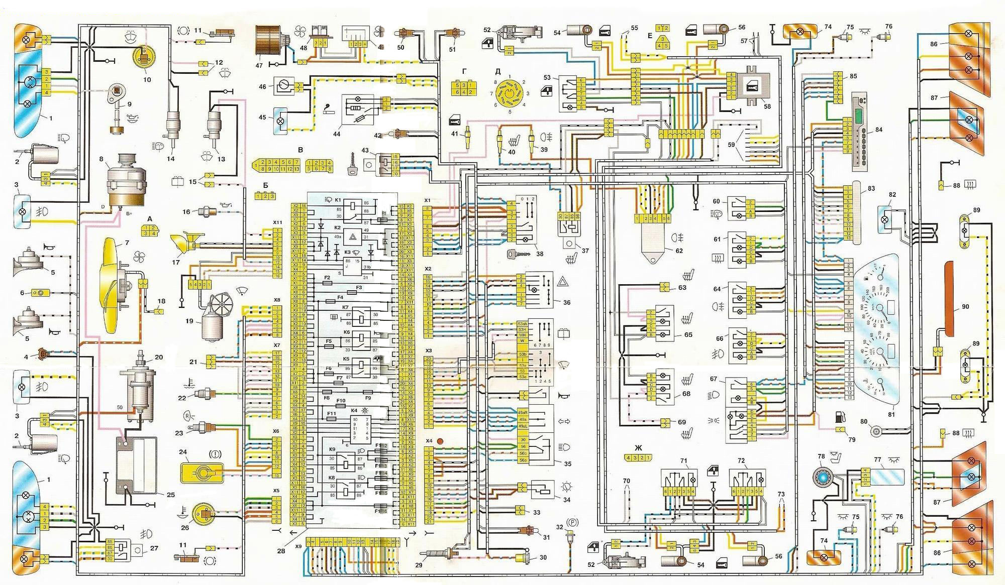- К5 — реле включения стеклоподъёмников;