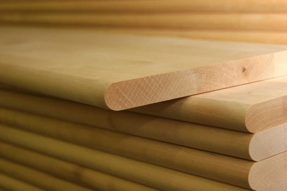 - Готовые доски распускают на небольшие бруски, которые называются ламелями. Для укрепления будущей конструкции, торцы подрезают на шпиц;