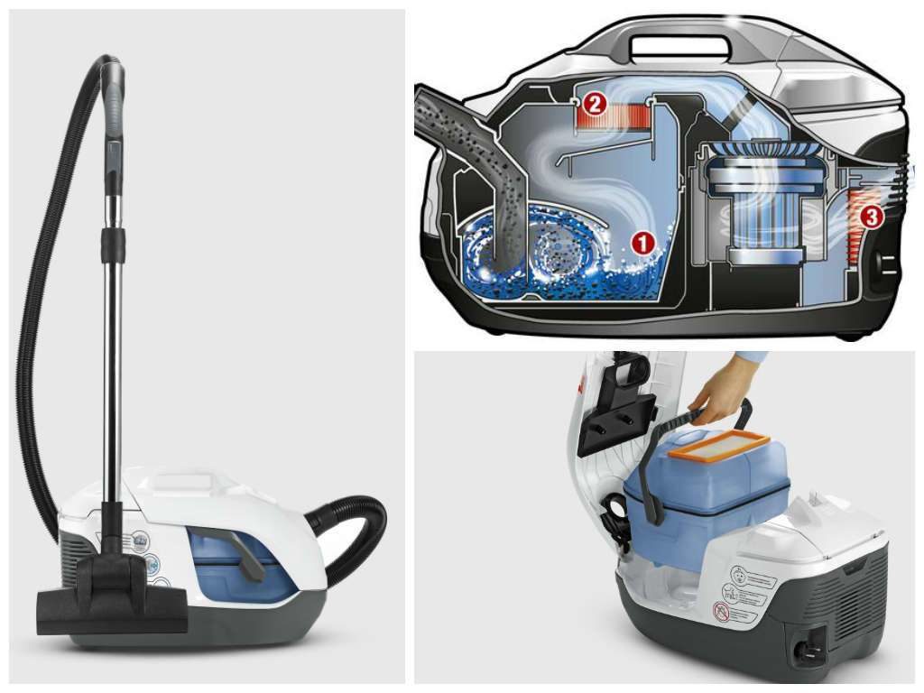 Несколько иначе устроена система фильтрации воздуха в пылесосах с аквафильтром. Здесь загрязненный воздушный поток пропускается сквозь толщу воды, что способствует не только его качественной очистке, но и дополнительному увлажнению воздуха. Кроме того, фильтры водного типа практически не влияют на мощность всасывания гаджета, поскольку плотность раствора в процессе уборки практически не меняется. Однако в большинстве аква-моделей присутствуют пресловутые HEPA-фильтры, поэтому падения силы всасывания пылесоса избежать все же удастся крайне редко.
