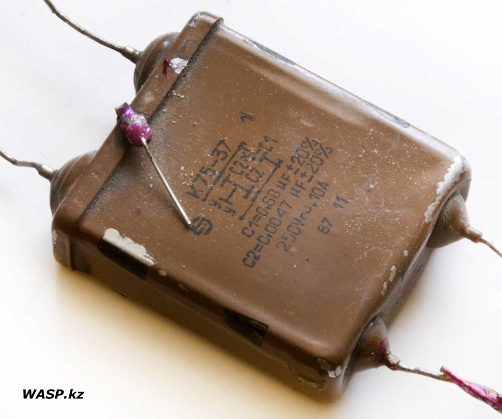 Еще один конденсатор К75-37, с тем же логотипом. Корпус крашенный, изготовлен в ноябре 1987 год…