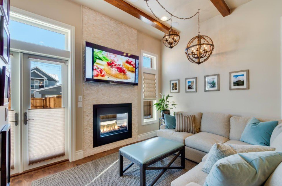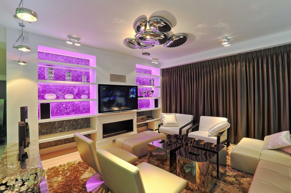 Чтобы создать функциональную систему светового зонирования квартиры, необходимо заранее ознакомиться с возможностями установки приборов. На фото ниже изображён универсальный вариант дизайна гостиной с использованием светильников разных видов.