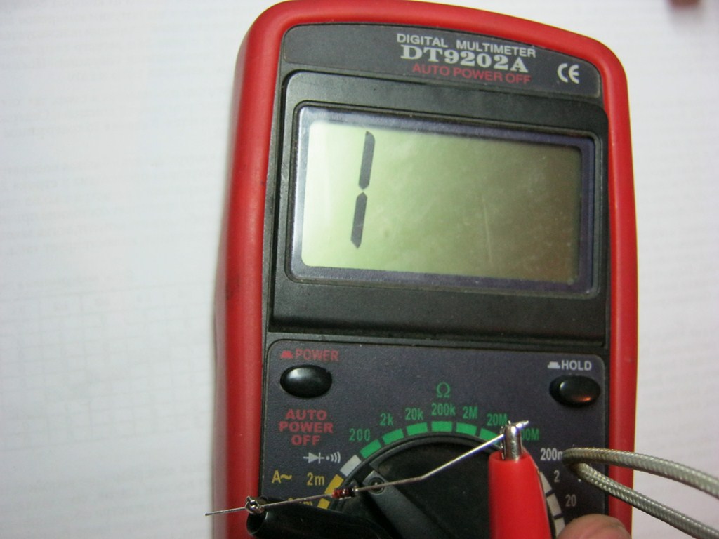 Меняем щупы местами и видим единичку. Это значит, что наш стабилитрон в полной боевой готовности.