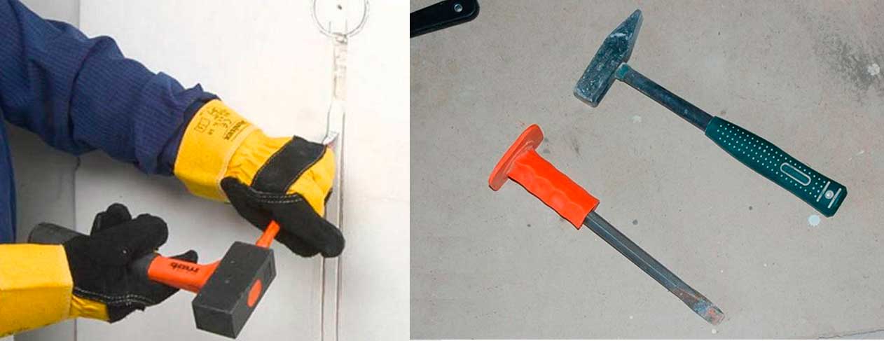 Наиболее простой инструмент, который должен быть в арсенале мужчины — долото (зубило) и молоток. Такой вариант подойдет при штроблении в мягком материале, к примеру, штукатурке или пеноблоке.