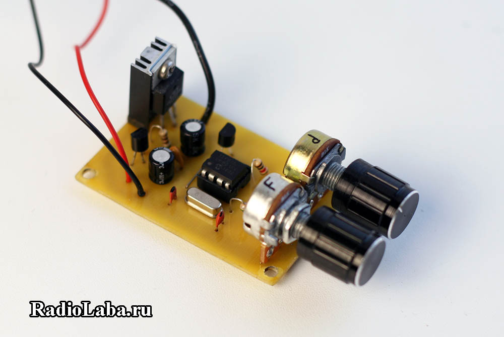 В качестве генератора также можно использовать готовый модуль, который можно приобрести в Китае (ссылка в конце статьи). Модуль имеет ЖК-дисплей, отображающий параметры сигнала, и кнопки, с помощью которых можно регулировать частоту импульсов и коэффициент заполнения в процентах. Для частоты 50 Гц минимальная длительность импульса составит 200 мкс (коэфф. заполнения 1%), для 100 Гц соответственно 100мкс (коэфф. заполнения 1%), что в принципе достаточно для наблюдения стробоскопических эффектов.