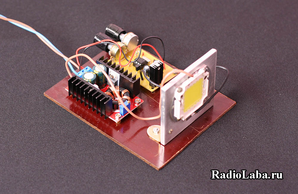 Я использовал светодиод OSRAM OSTAR SMT RTDUW S2W, установленный на процессорный радиатор от старого компьютера.