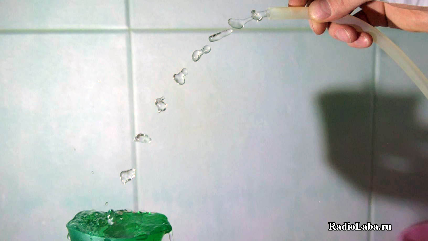 Еще один интересный стробоскопический эффект – это левитация воды. Для его наблюдения я дополнительно приобрел в Китае электромагнитный насос высокого давления от кофемашины, мощностью 56 Вт (ссылка в конце статьи). Питается насос переменным напряжением 220В. Главной особенностью насоса является то, что он перекачивает воду отдельными порциями с частотой сети 50 Гц. Если направить свет стробоскопа на падающую струю воды от насоса, то можно увидеть висящие в воздухе капли воды, просто невероятное зрелище. Регулируя частоту вспышек можно добиться плавного движения капель вниз или вверх, при этом капли возвращаются обратно в насос, как будто перемещаются назад во времени.