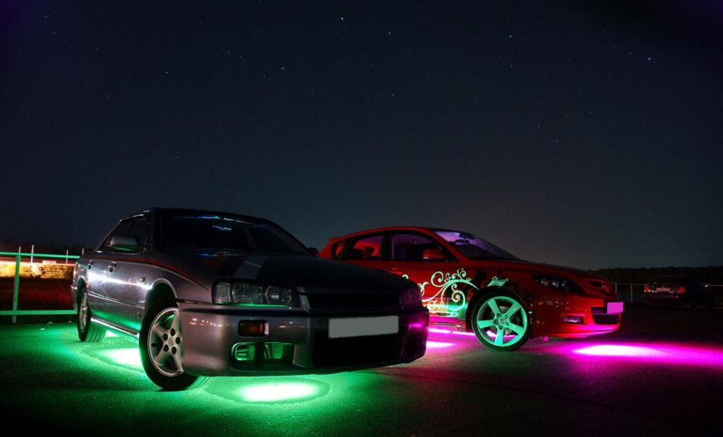 такая подсветка может светиться различными цветами (синий, зеленый, желтый, фиолетовый и т.д.). Это позволяет не только сделать подсветку салона или автомобиля снаружи качественной, но и оттенить цвет кузова;