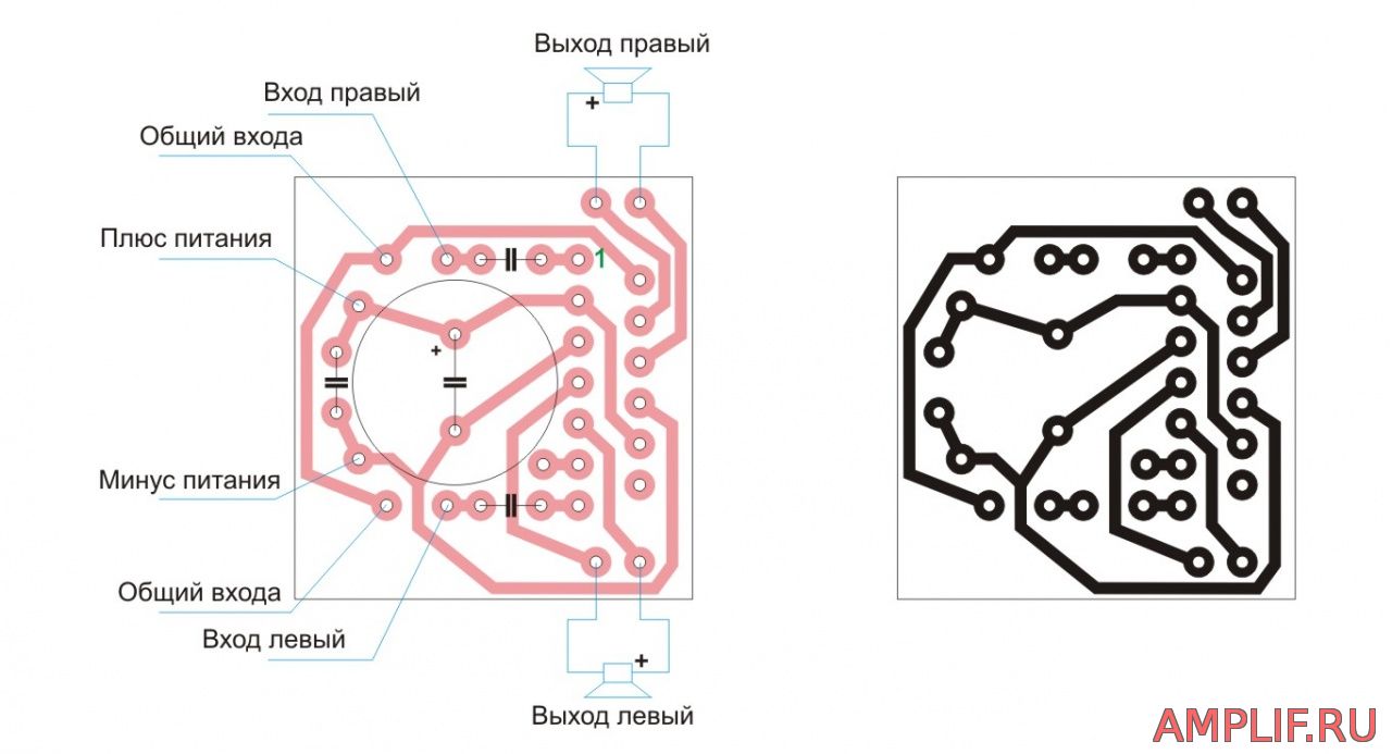 Проходной конденсатор на входе усилителя (0,22) должен быть пленочным, его емкость может варьироваться в пределах 0,1 мкФ – 2,2 мкФ.