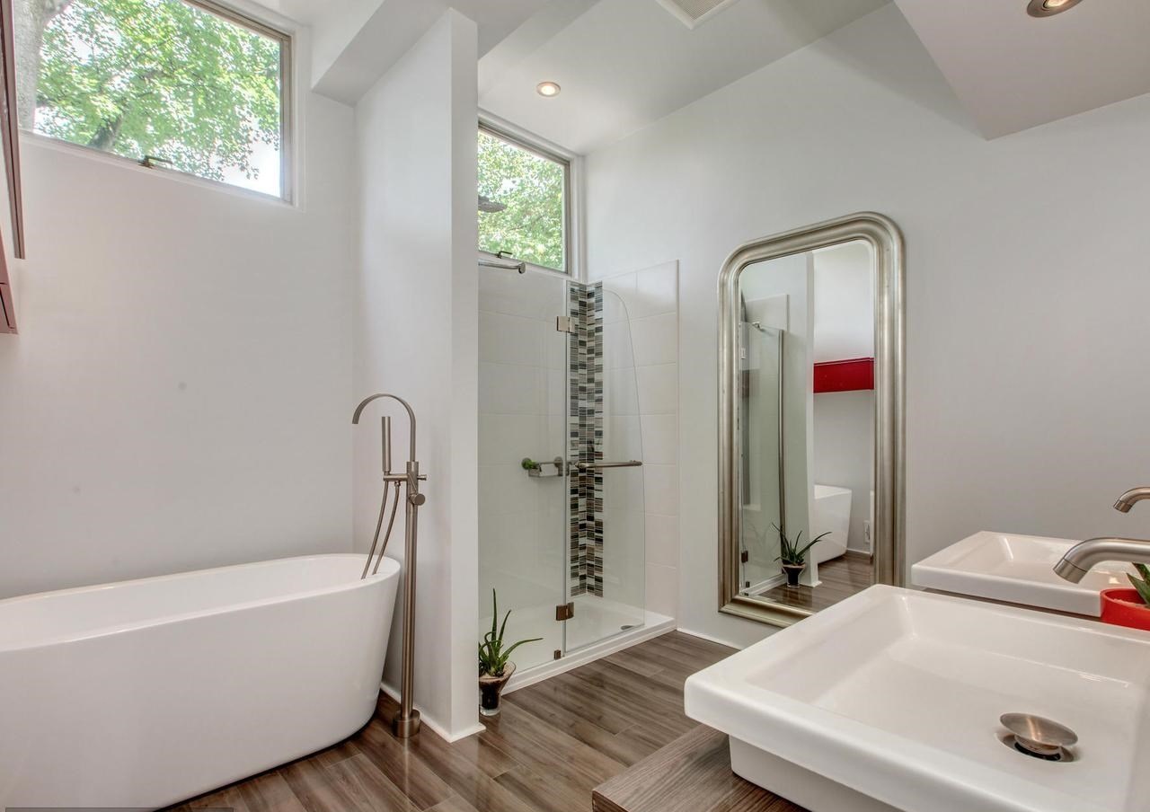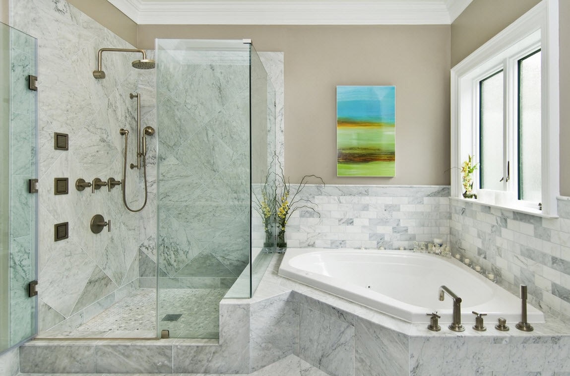 Особенно актуально это для загородных домов, где наличие двух составляющих закладывается еще на этапе проектирования дома. В этом случае санузел делят на несколько зон перегородками или посредством других интерьерных элементов. В одной, как правило, наибольшей из всех, устанавливают ванну, в другой – душ, в третьей унитаз и биде либо их совмещенный вариант.