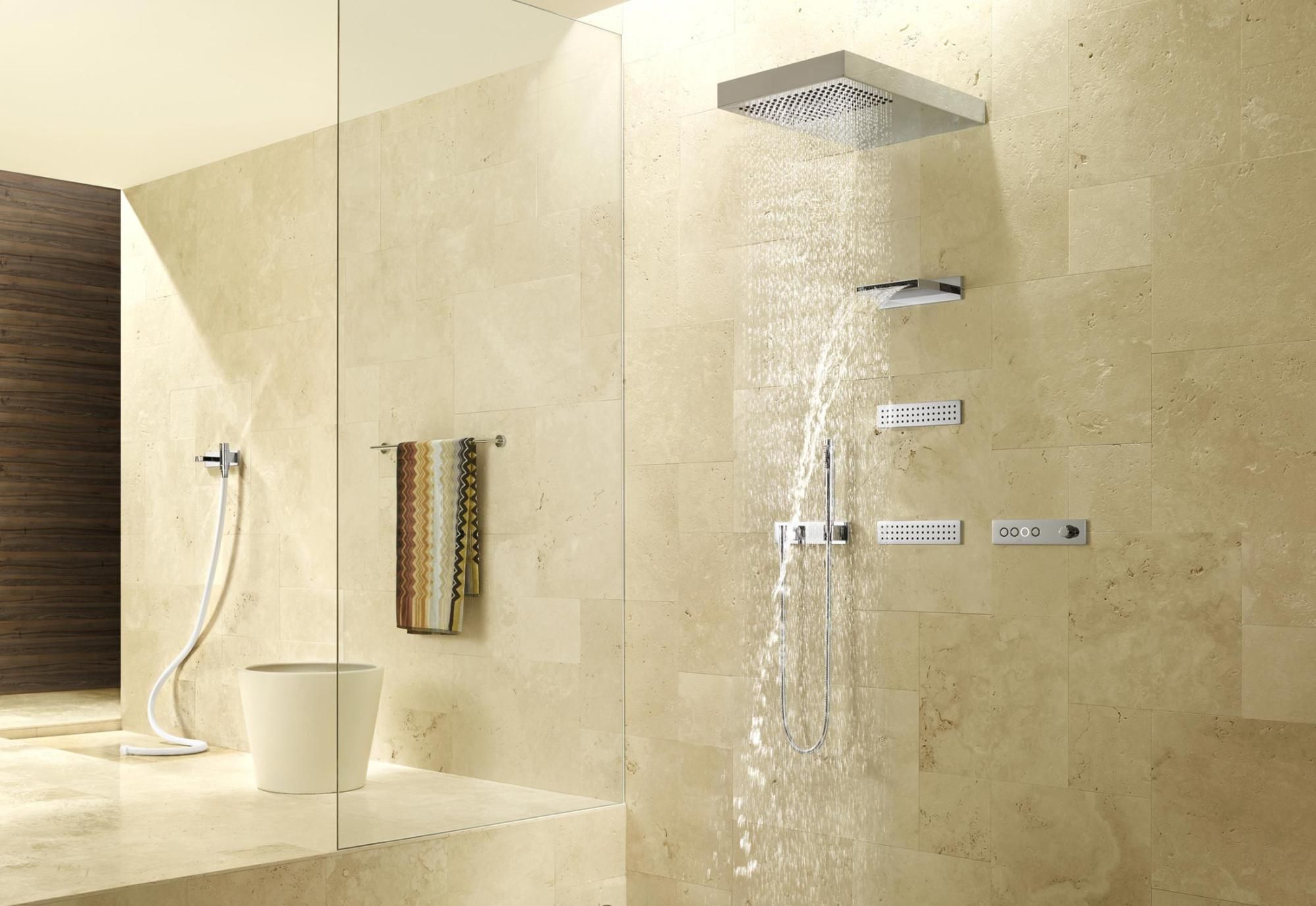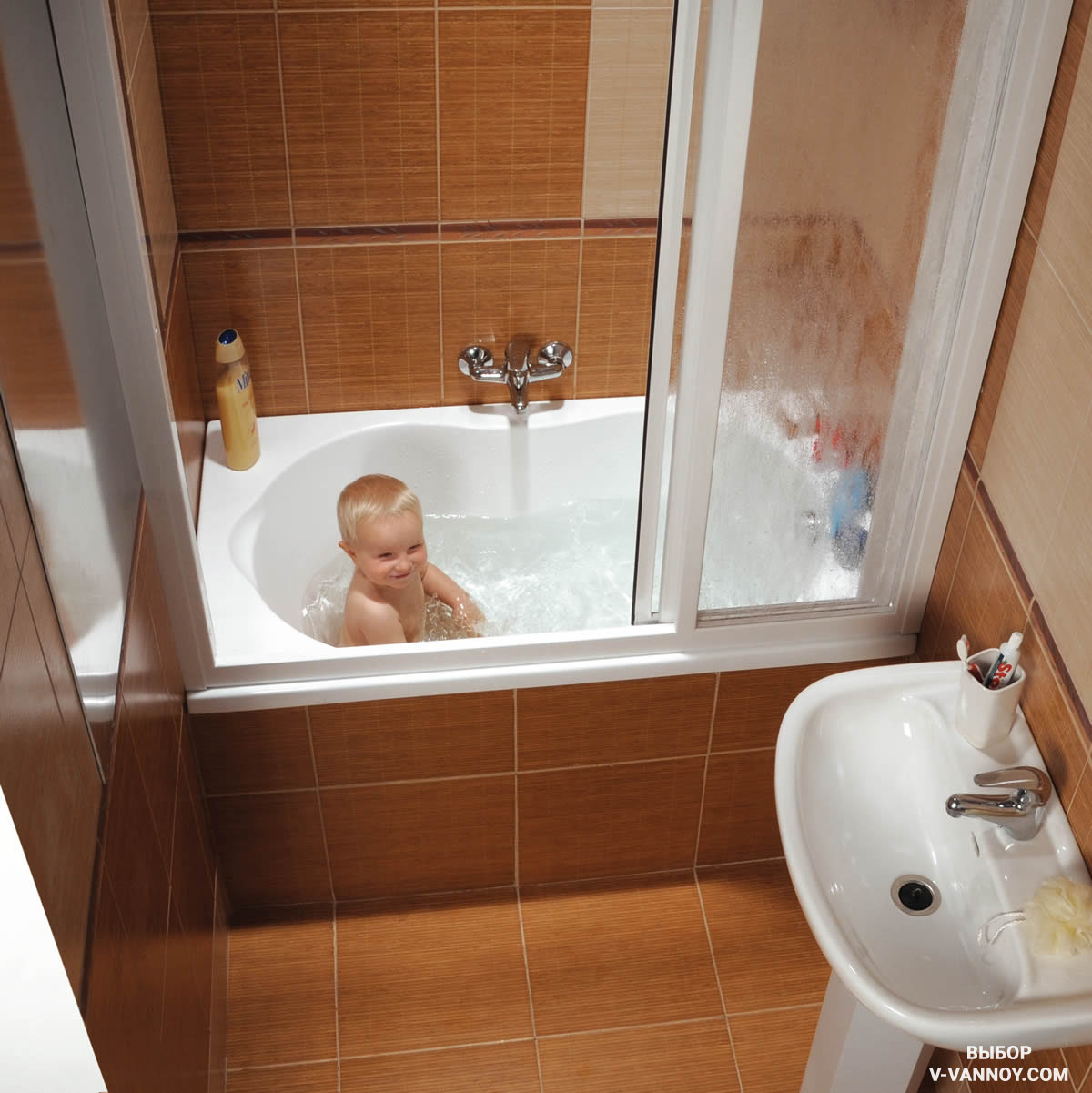 Если в семье есть маленькие дети, либо кто-то из хозяев любит принимать ванны, то лучше рассмотреть комбинированный вариант. Душевая гарнитура монтируется на потолке или на стене с помощью кронштейнов, ванна выполняет функции поддона. Вместо панелей, можно использовать более экономную конструкцию: лейки-люстры. Они имеют большой диаметр и крепятся на потолке. В качестве ширмы можно использовать занавеску либо специальный экран. Специалисты рекомендуют использовать трехсекционные шторки в качестве защиты от брызг, после использования они убираются в сторону.
