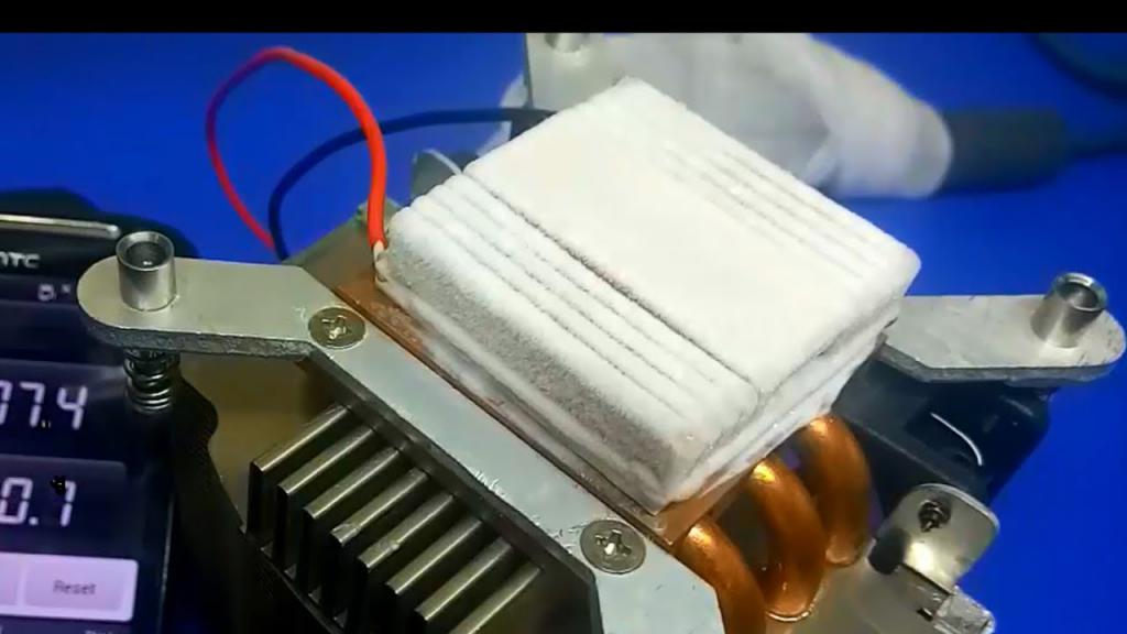 В свою очередь в холодной ёмкости наблюдается аналогичный эффект, но за счёт охлаждения жидкости через радиатор. Получаемая разница температур даёт электричество на термоэлектрическом преобразователе.