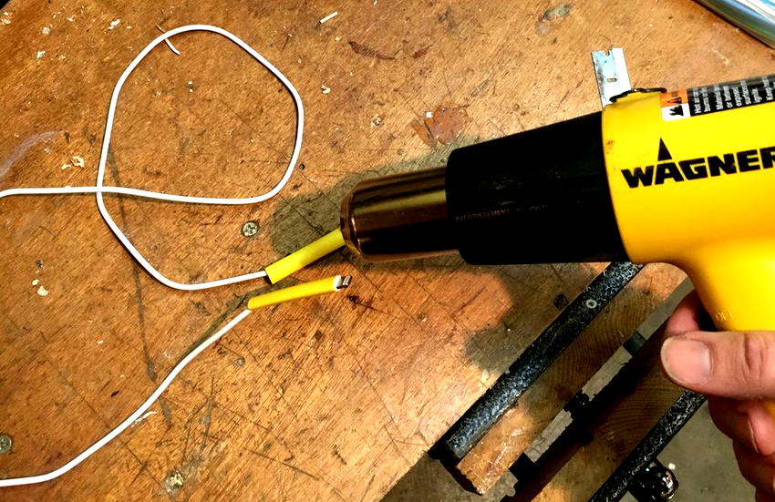 Для стяжки коммутируемых участков электричества может применяться строительный фен или обыкновенная зажигалка
