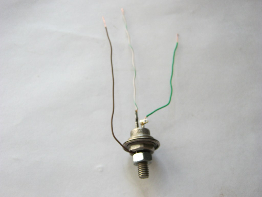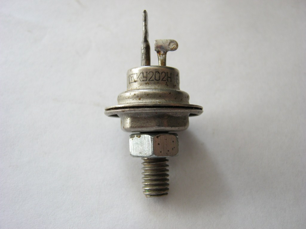 Параметры незначительно отличаются от вышеописанного компонента, и средний ток в том числе, равен 7,5 А. Также можно применить в схемах более новый российский элемент Т112-10. Он имеет также металлический корпус с резьбовым отводом, но его размеры будут несколько меньше.