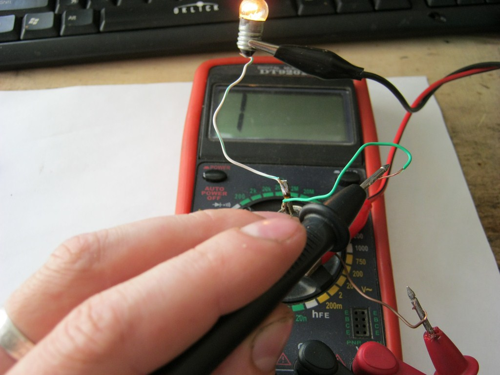 также можно использовать щупы мультиметра в режиме прозвонки, на щупах напряжение тоже больше 0,2 Вольта