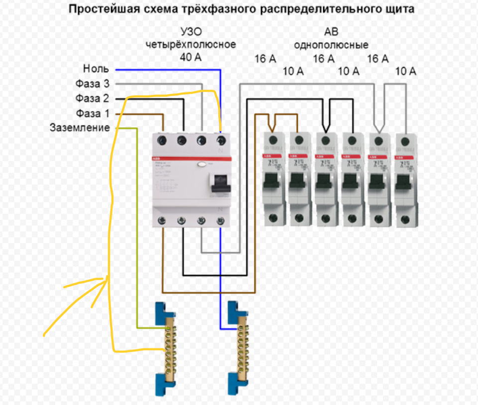 В трехфазной сети неправильно подключено УЗО по причине того, что клеммы заводятся на одноименные фазы – также является ошибкой и повод для отключения защитного устройства.