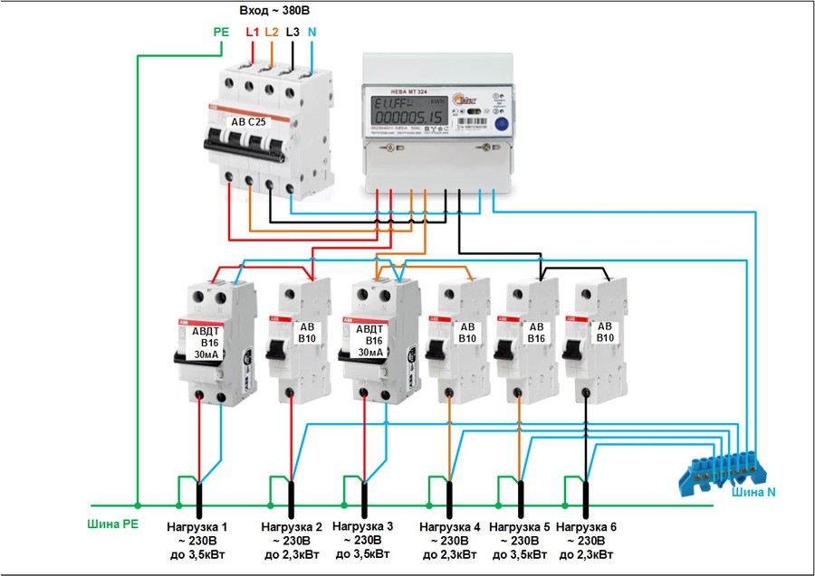 Вышеприведенные схемы имеют наглядный вид, чтобы донести саму суть подключений разных защитных устройств в одну общую схему электрощита. Также эти примеры очень элементарные и поэтому ваши схемы будут намного больше и сложнее.