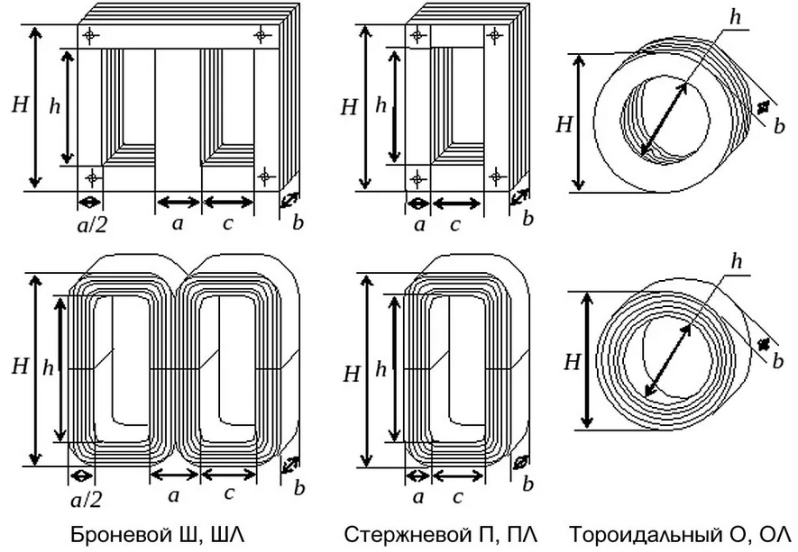 Трансформатор выполнен на витых либо пластинчатых магнитопроводах.