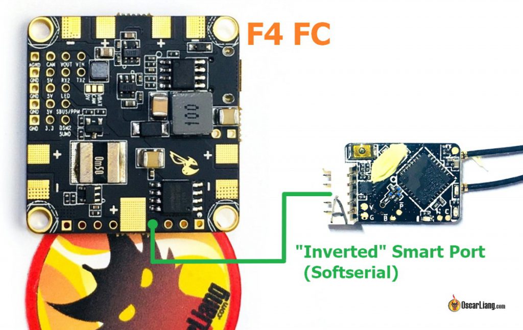 При использовании Softserial, можно подключать SmartPort к ПК на F4 без необходимости инвертировать сигнал.