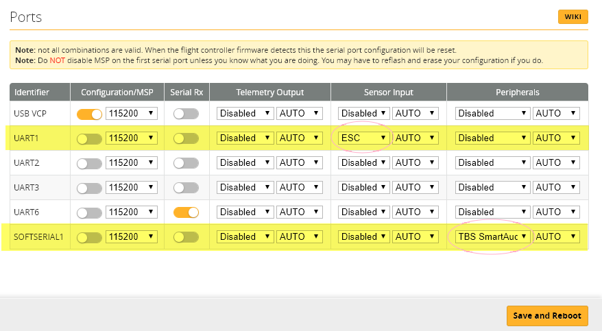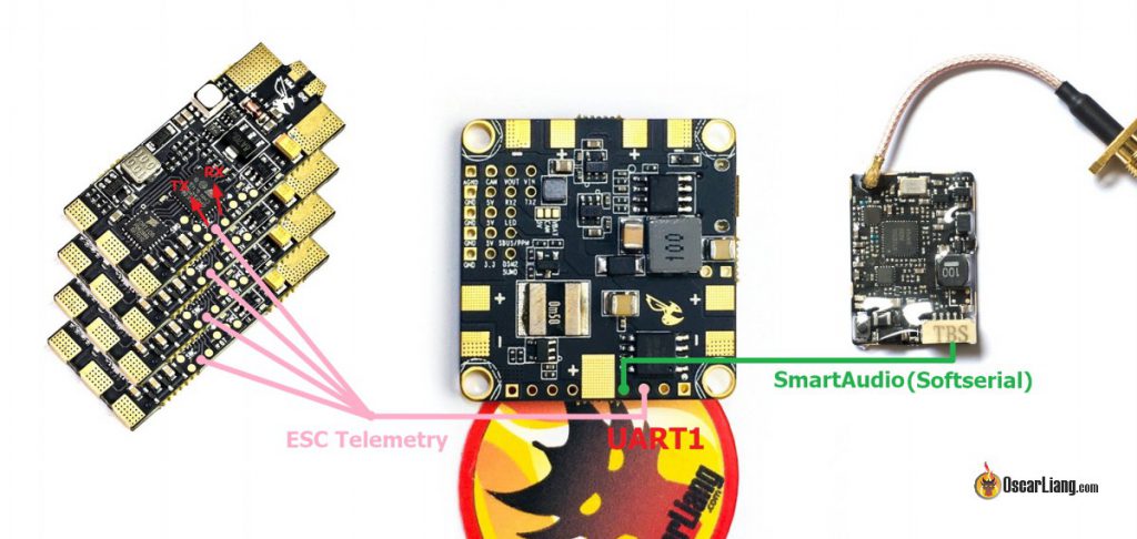 Например, вы можете повесить телеметрию регулей на RX UART1 и настроить TX UART1 как SoftSerial для работы SmartAudio.