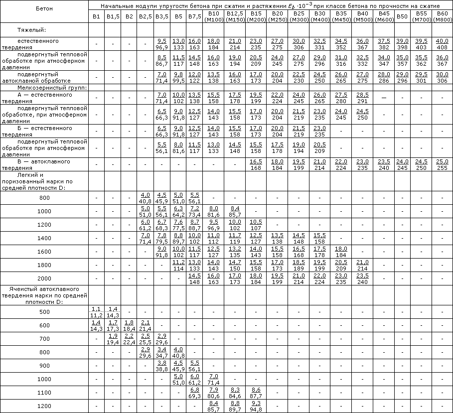 Таблица 2.1. Начальные модули упругости бетона согласно СНиП 2.03.01-84*(1996)