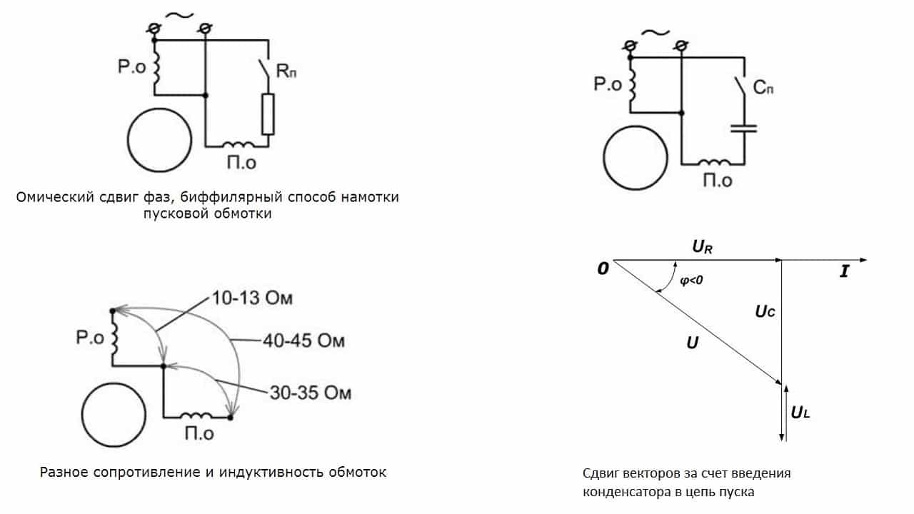 Для асинхронного однофазного электродвигателя могут использоваться три основных способа пуска: