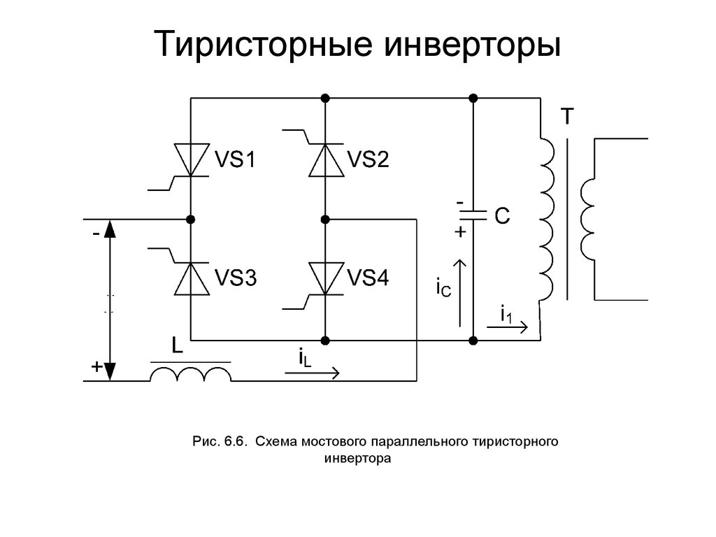 Сопротивление тиристора максимально, ток через нагрузку не протекает. Диаграммы основных процессов, протекающих в схеме на рис. 1, рассмотрены на рис. 2.