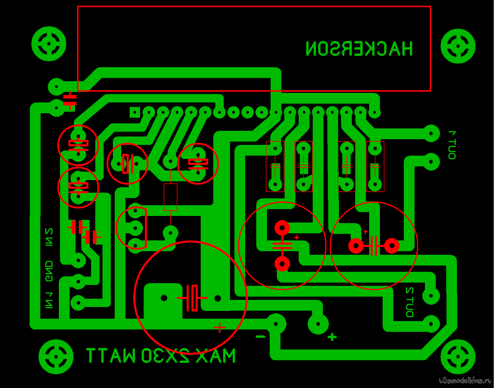 Усилитель выдает свои чистые 20-30 ватт в канал! Испытывал на АС35! Имейте ввиду что это оконечник, никаких регуляторов громкости нету!!! Перед пуском громкость на минимум!!! Запускал усилитель от обычного БП компьютера, он до сих пор так и работает (времени нету в корпус воткнуть его=)