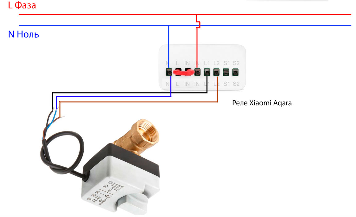 Общее управление краном осуществляется через двухканальное ZigBee реле Aqara.