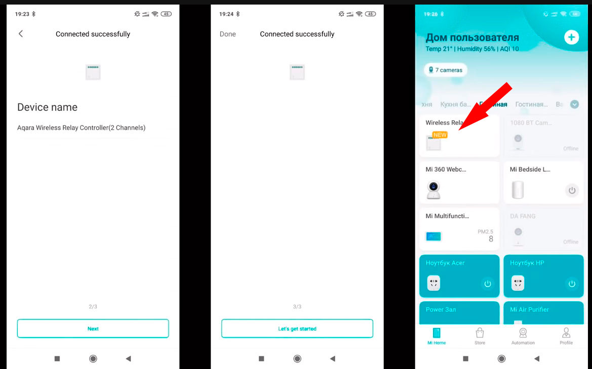 На втором этапе задаете имя устройства. Последний этап – успешное добавление девайса в систему.