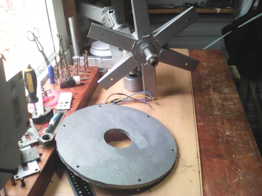 - На диске разметить и сделать отверстия для крепления болтами в намеченных точках лопастей.