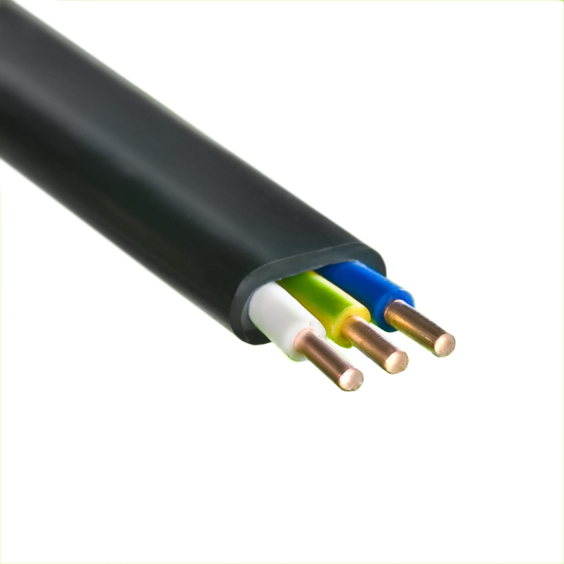 Это плоский электрический провод с двумя или тремя монолитными жилами из меди. Внешний защитный слой и изоляция проводников изготовлены из ПВХ. Площадь сечения проводников от 1.5 до 6 кв. мм. Температура эксплуатации изделия от -15 до +50 °C с напряжением в сети до 250 В.