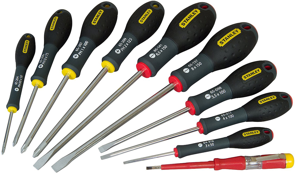 К наиболее распространенным видам относятся прямошлицевая и крестообразная отвертки.