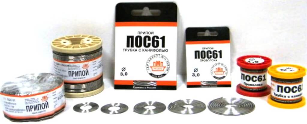 ПОС-63 и ПОС-61 — первая марка ПОС получила широчайшее применение при пайке печатных плат и микросхем. ПОС-61 особенно незаменим в радиоэлектронике. Припой отлично подходит для пайки радиодеталей и измерительного оборудования, учитывая его особый состав.