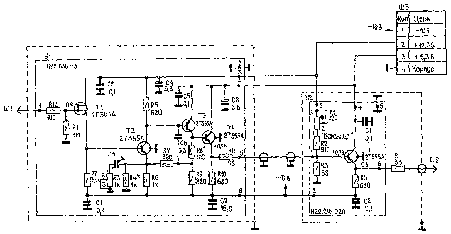 Принципиальная электрическая схема двухкаскадного усилителя звукового сигнала