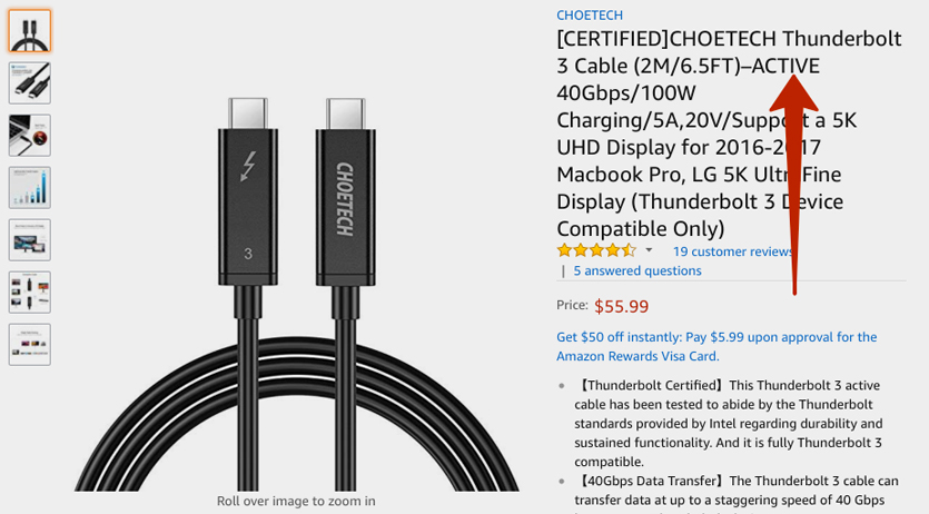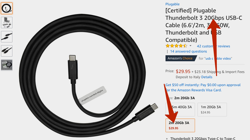 А вот пример сертифицированного пассивного кабеля Plugable длиной до 2 метров. Скорость тут не более 20 Гбит/с, но и цена приятнее в разы.