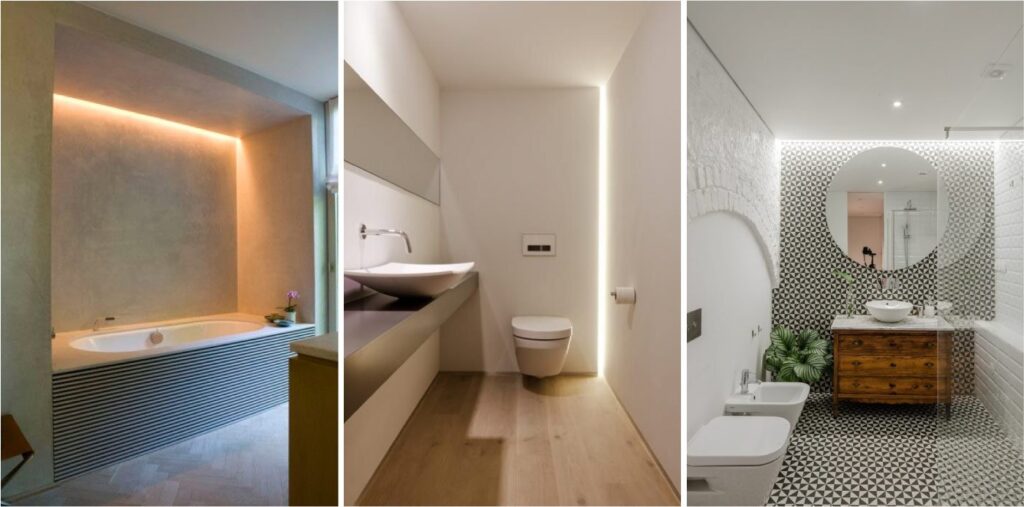 Есть ряд нюансов, которые следует учитывать, создавая светодиодное освещение в ванной.