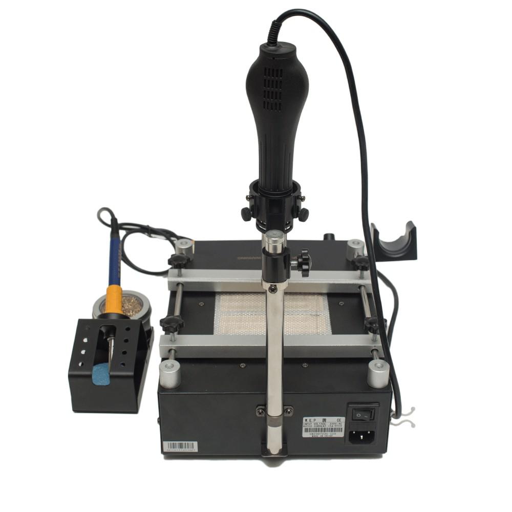 Разработана для стандартной и бессвинцовой пайки, по отзывам пользователей, лучшие результаты у оборудования при работе BGA-модулями и мостами материнских плат. Комплектуется двумя инфракрасными нагревателями с независимым контролем теплового нагрева. Верхний излучатель мобильный, что позволяет выбрать оптимальное место над печатной платой. Регулятор высокоточный, настройка плавная в широком диапазоне. Данные выводятся на ЖК-дисплей.