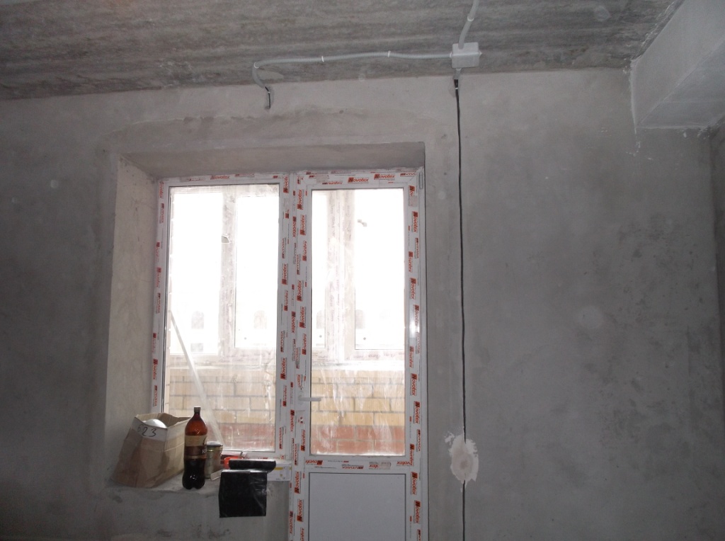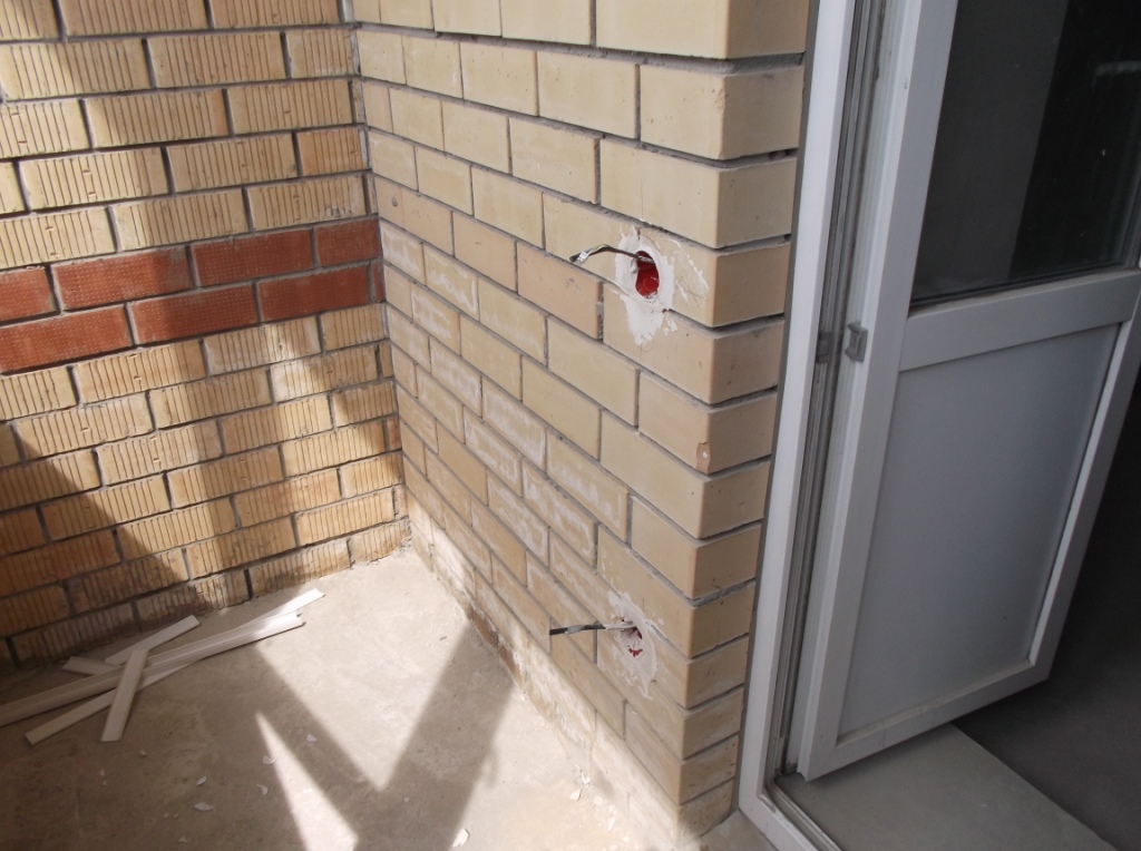 Чтобы не портить внешний вид балкона штробу под проводку балкона выполнили со стороны кухни.